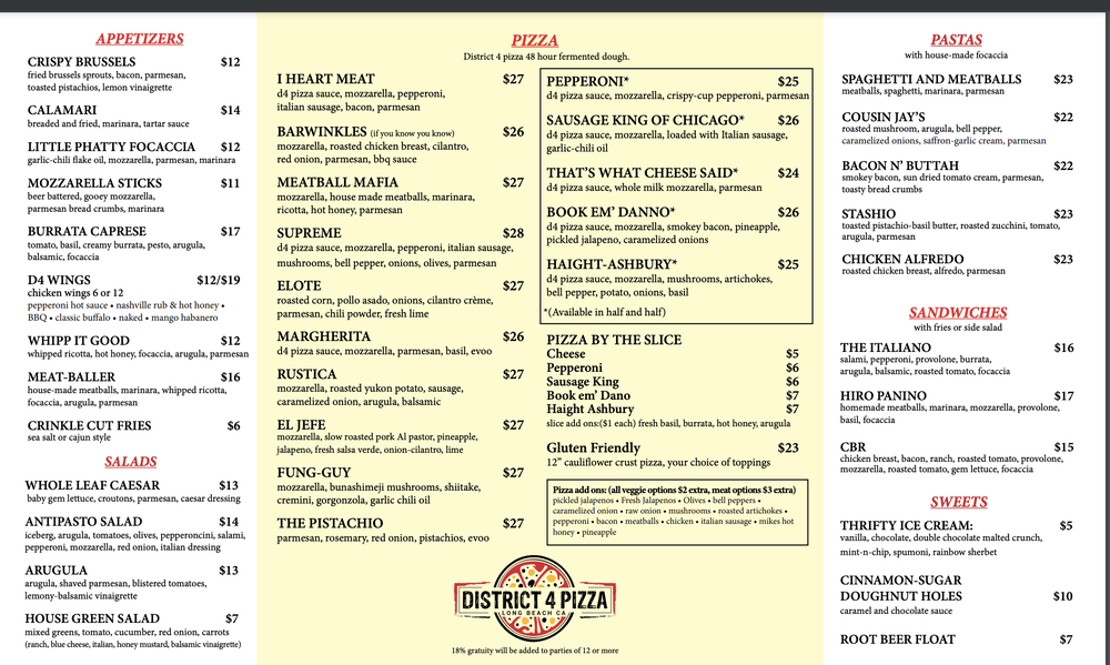 Family-friendly and equipped with multiple screens for sports enthusiasts, District 4 Pizza is the perfect destination for a fun, casual dining experience. With vegan options and dog-friendly outdoor seating, it’s more than just pizza—it's a community hub where great food and camaraderie come together.